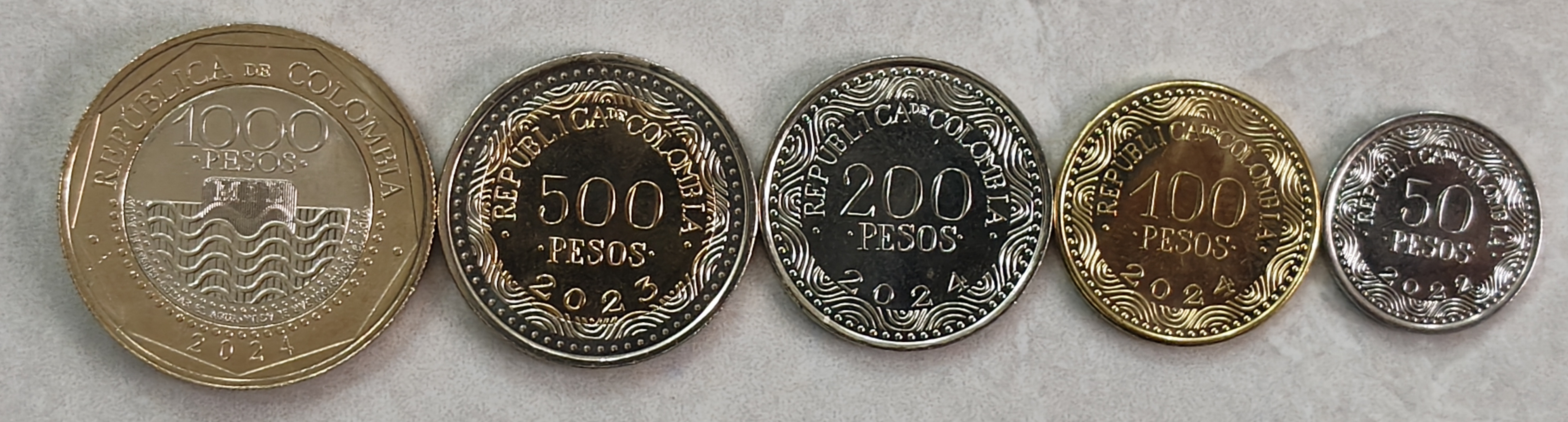 Colombia 5 pcs set gem unc 2 coin bymetalic beautiful set sku ( z 1306
