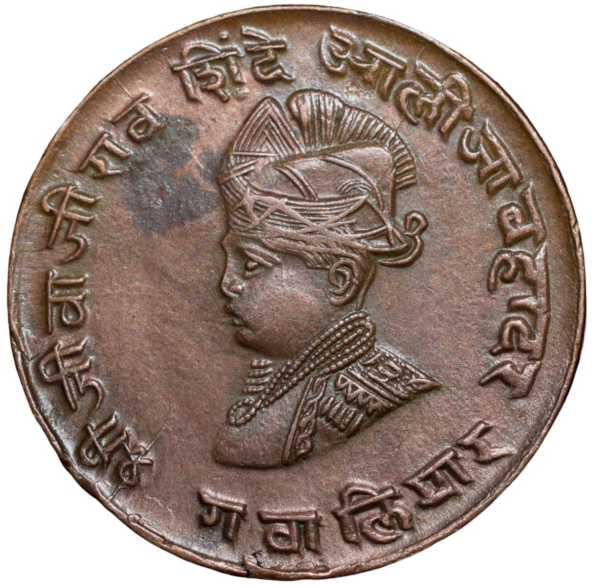 Copper Coin of Jivaji Rao Sindhia(AD 1925-48) of Gwalior State KM176 Die-Crack Error