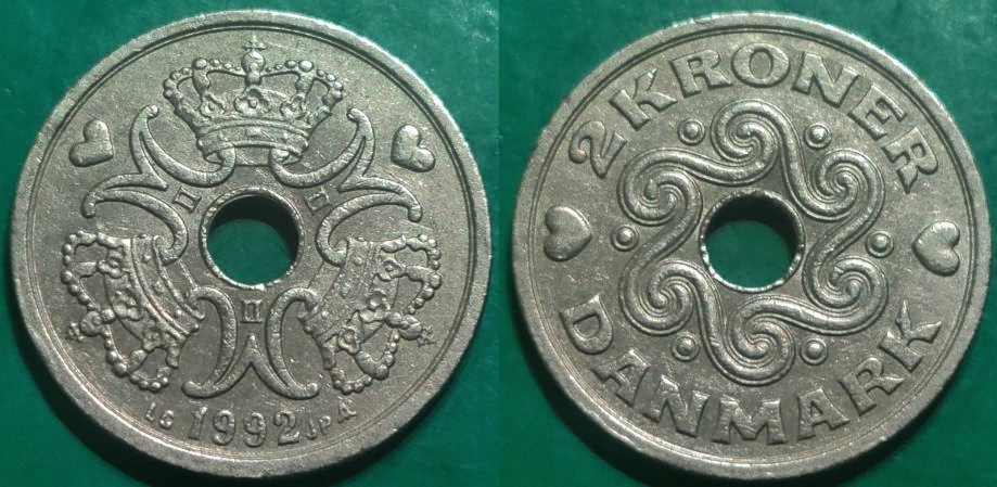 Denmark, 2 Kroner, 1992-2023, KM #874, Circulated Condition.