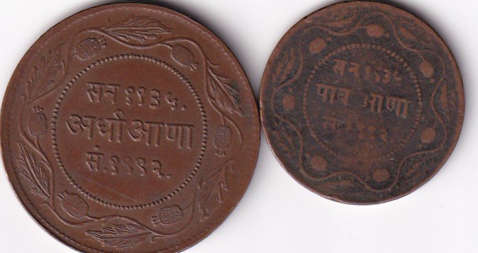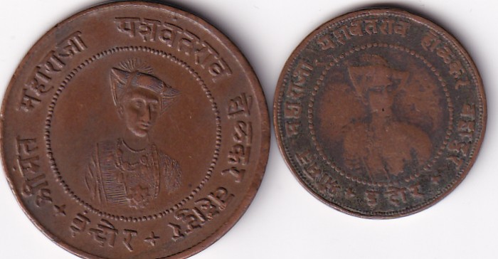 dore, Princely state of ½ Anna+ 1/4 ANNA – Yashwant Rao II ( 2 PCS SET ) #Z-1351