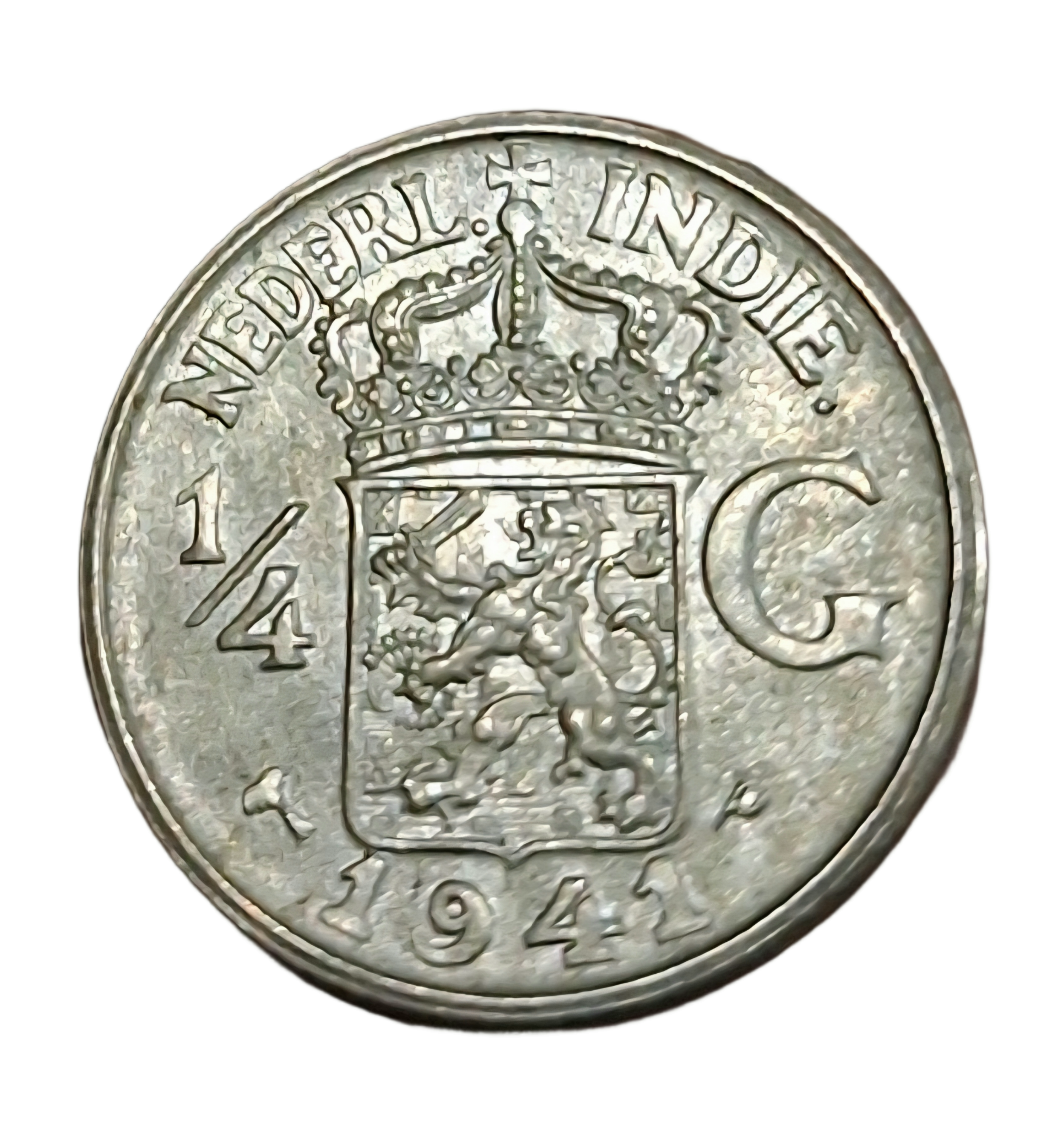DUTCH EAST INDIES Silver 1/4 GULDEN Year 1941 Wilhelmina of the Netherlands in UNC Grade.