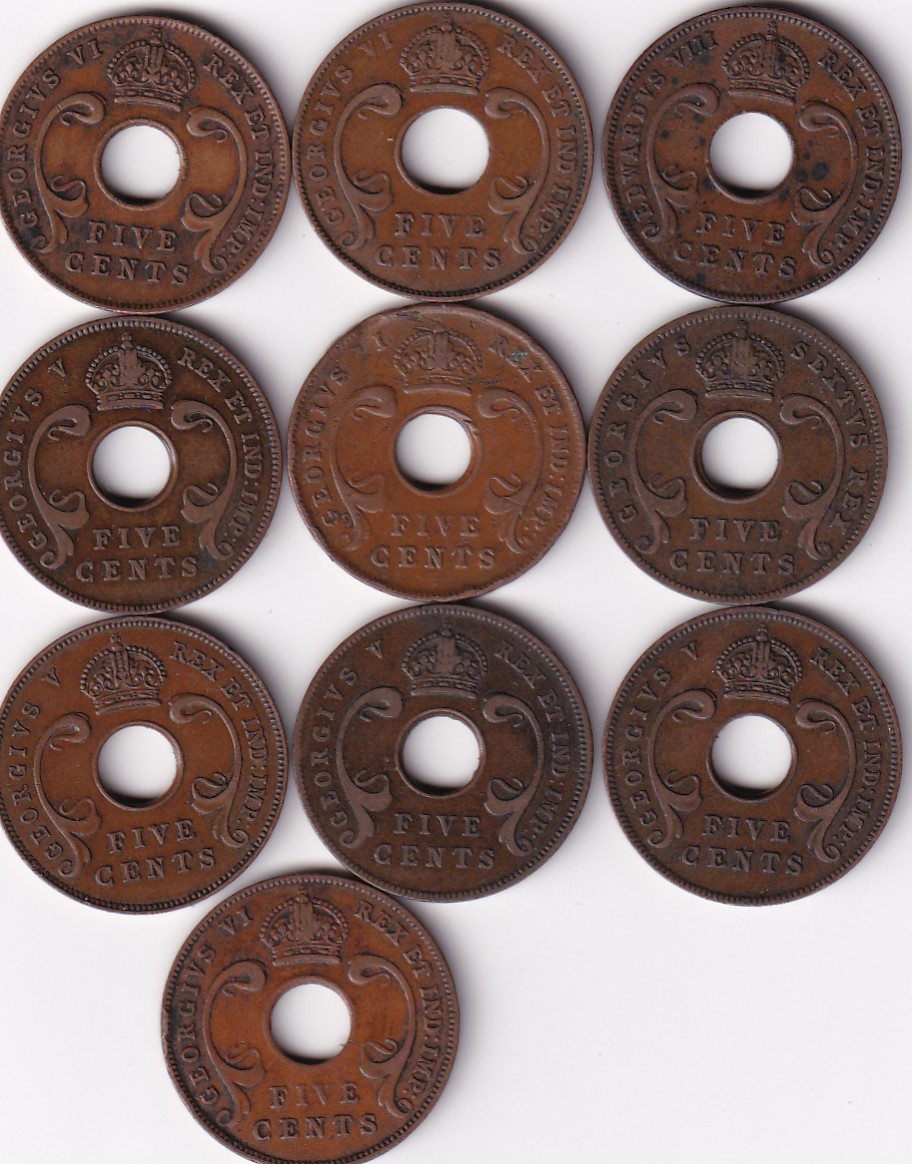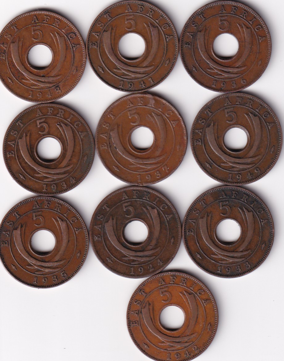 EAST AFRICA 5 CENTS ( 10 DIFFERENT DATES ) RARE 10 PCS SET #Z-1346