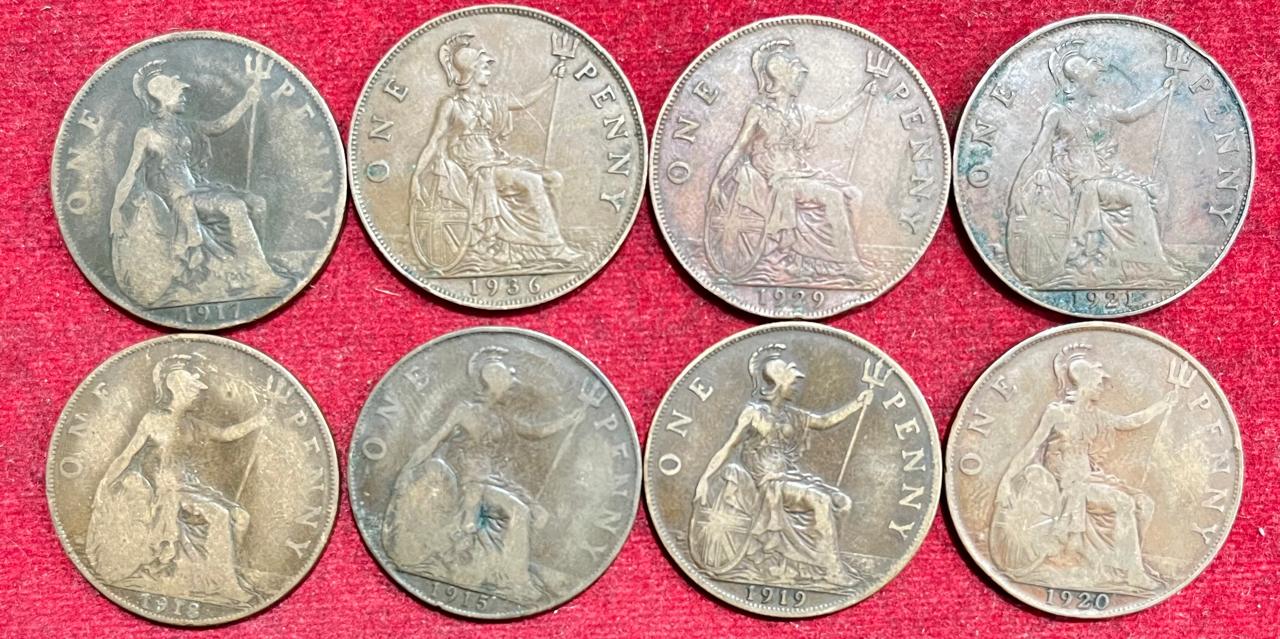 ENGLAND 1 PENNY ( 8 DIFFERNT DATES) RARE COIN #I-45
