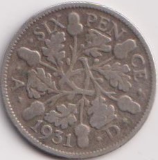 <England 1931 George Fifth Silver Six Pence Coin