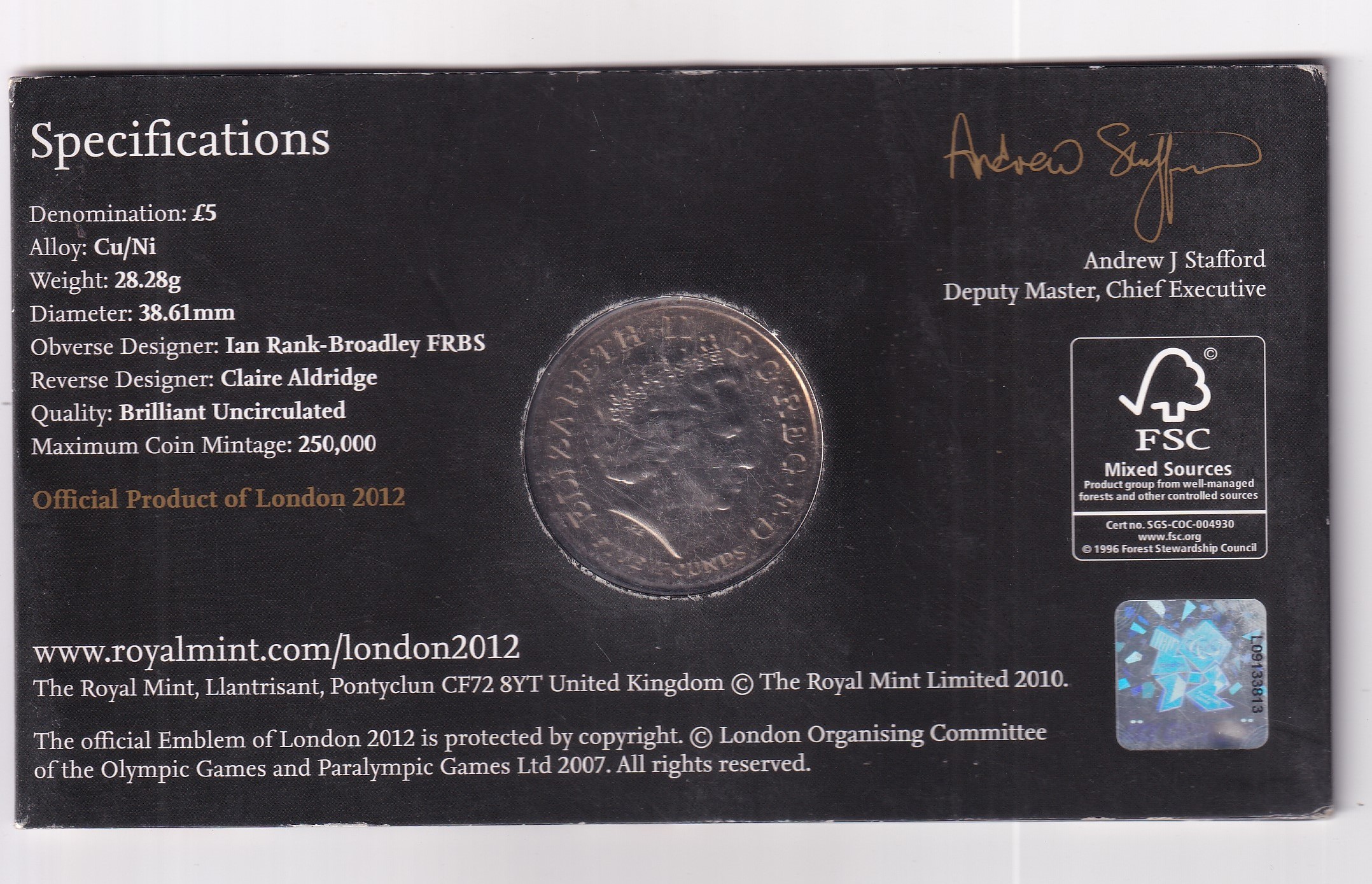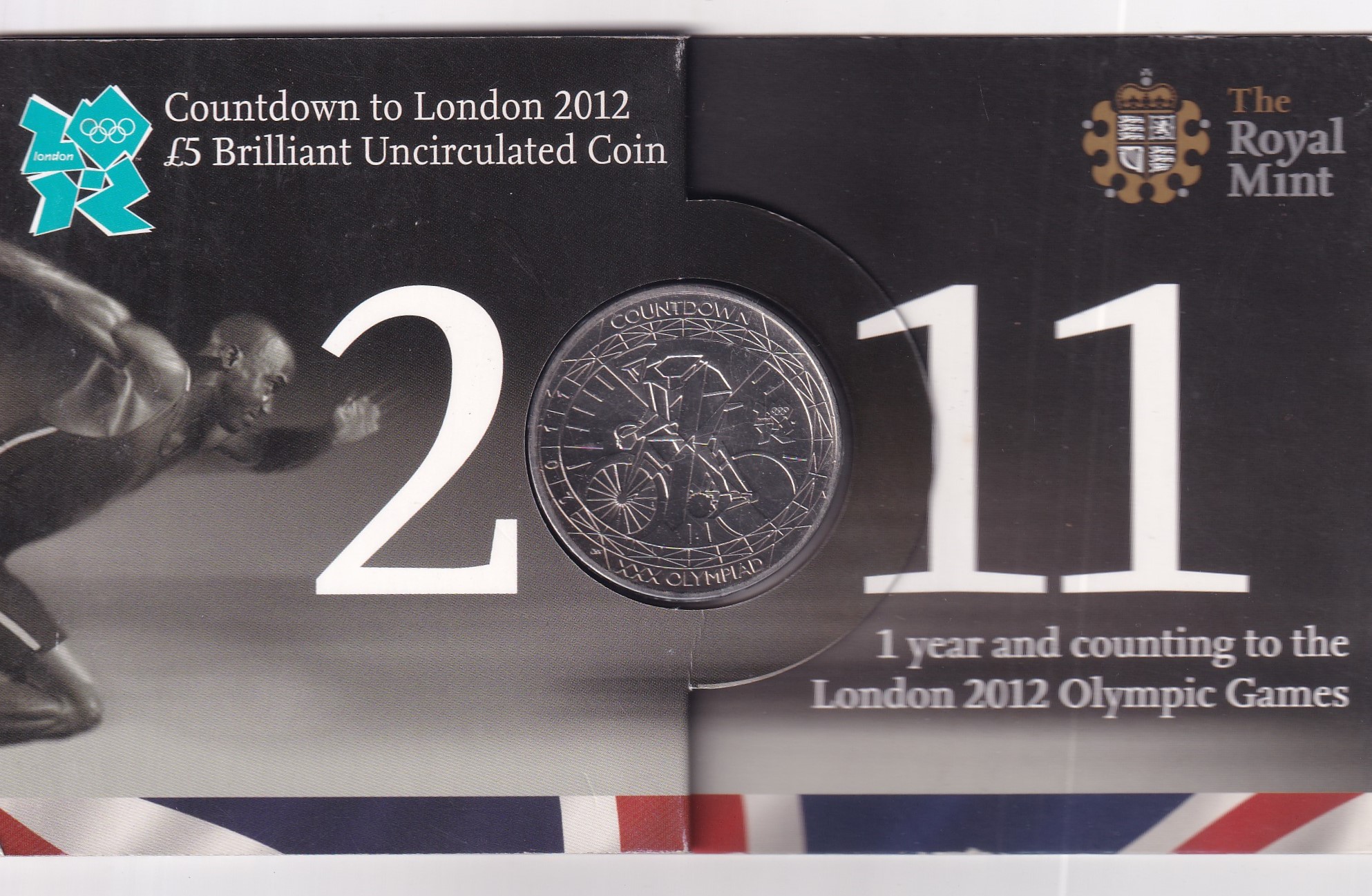 ENGLAND 5 POUNDS 2012 – XXX OLYMPIAD COUNTDOWN – COMMEMORATIVE COIN FIRST DAY COVER ROYAL MINT PACK GEM UNC