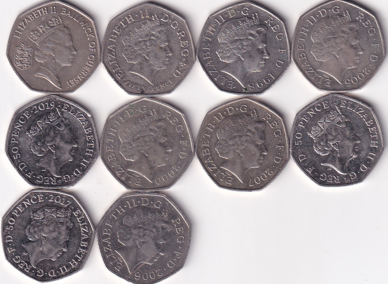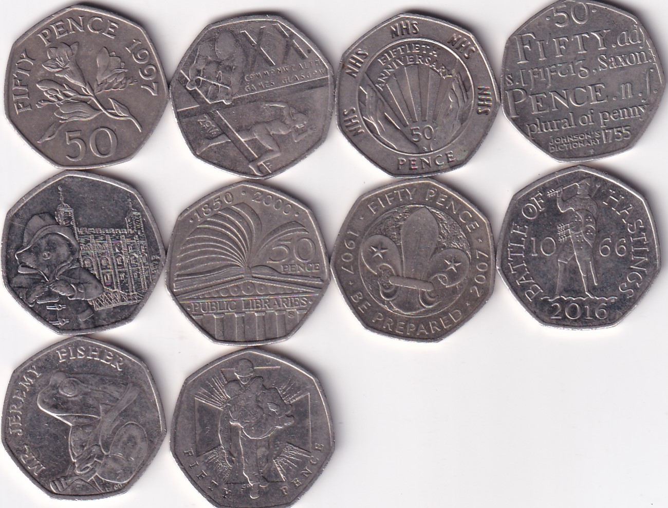 ENGLAND HALF POUND 10 DIFFERENT COINS TOP CONDITION RARE SET