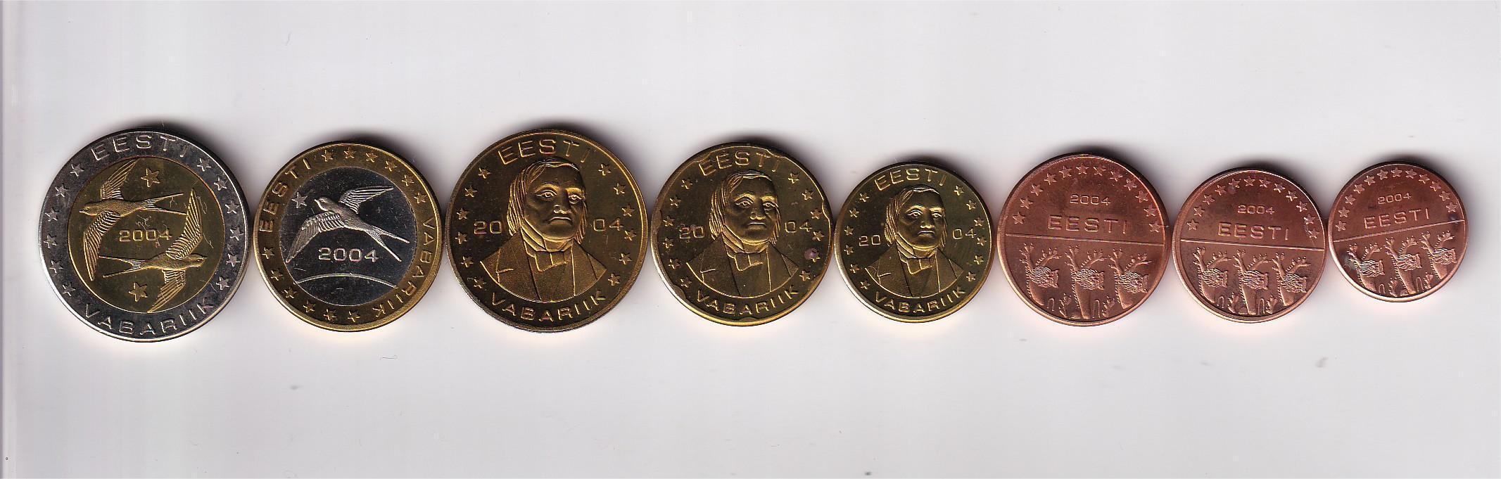 Estonia Proov Essai Probe (8 Pcs ) Unc Coin Set #D-137