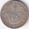5 Mark Germany 1939 卐 Hamburg Mint J Silver Coin Rare