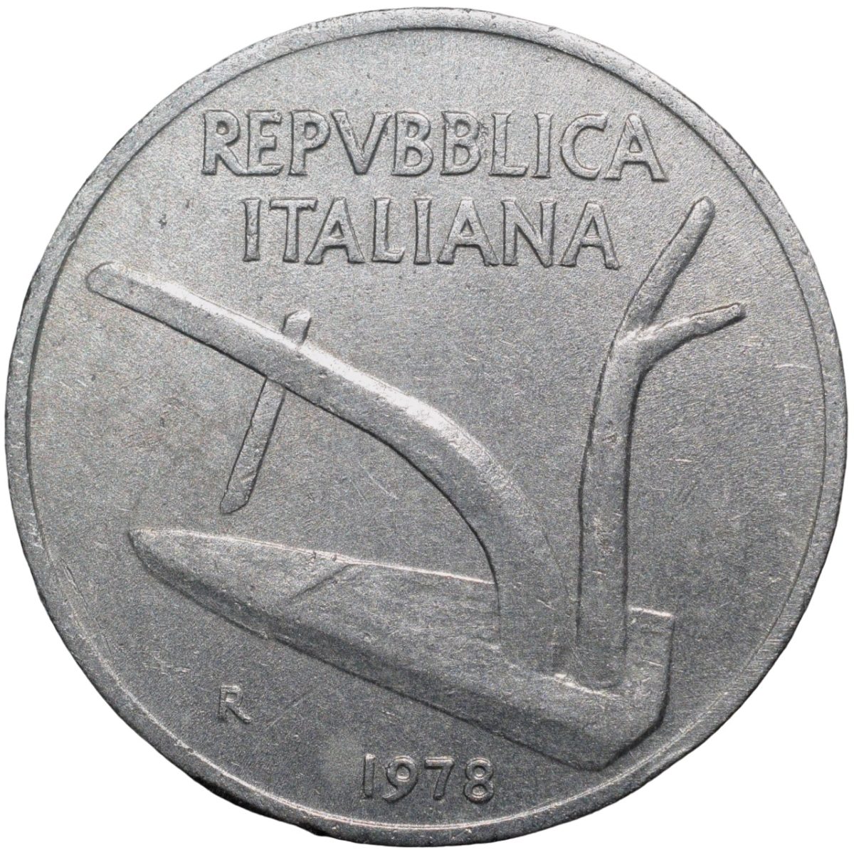Aluminium 10 Lira of Italy Country (AD 1978) with Plough & 2 ears of Wheat