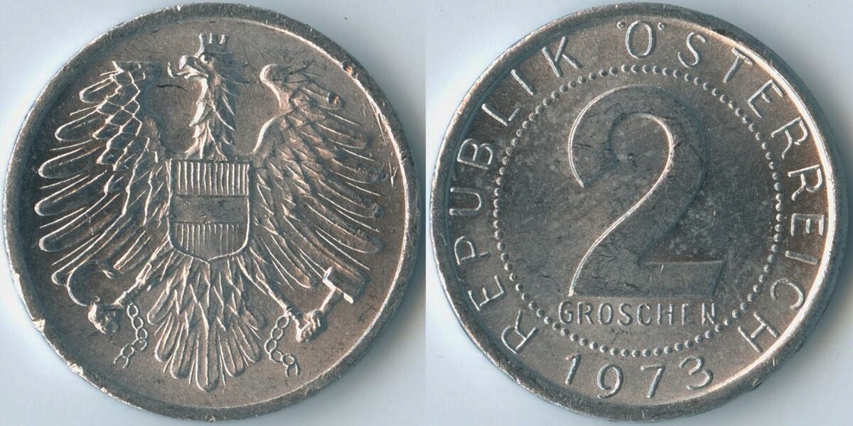 Austria, 2 Groschen, 1973, KM #2876, AUNC Condition.