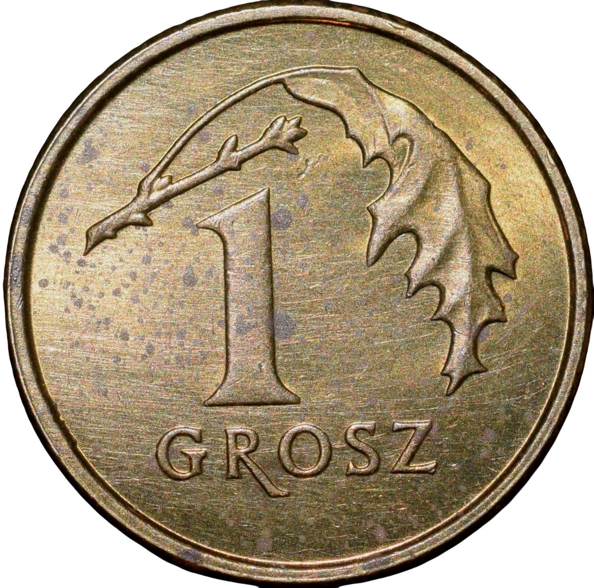 Brass 1 Grosz of Poland Country (AD2013) with Crowned Eagle/An Oak Leaf