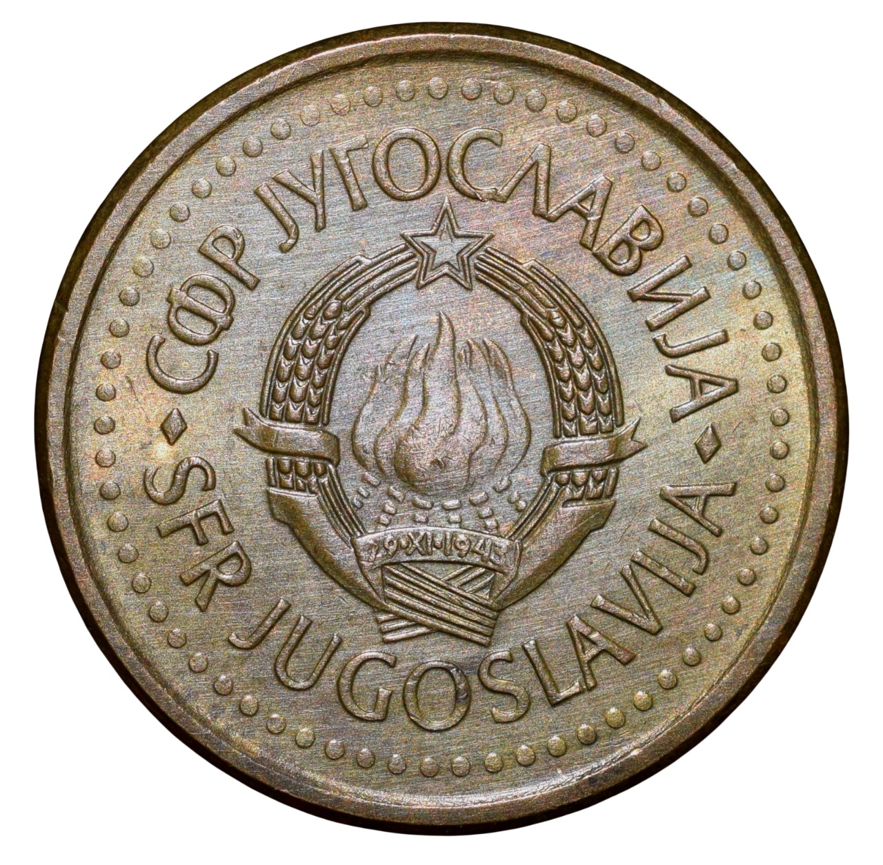 Yugoslavia Country, (AD 1991), Brass 10 Para, Obv: Arms of Yugoslavia in Centre, Inscriptions around, Rev: Denomination & Date, 3.10 Gms, 16.97 mm, Extremely Fine.
