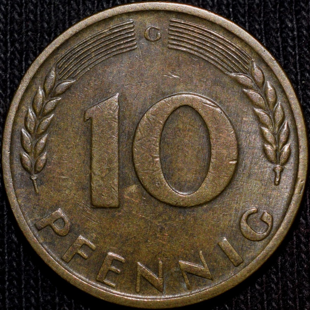 Germany Country, (AD 1950), Brass 10 Pfennigs, Obv: Date & Inscription around Oak Sapling, Rev: Denomination, 4.04 Gms, 21.26 mm, Extremely Fine.