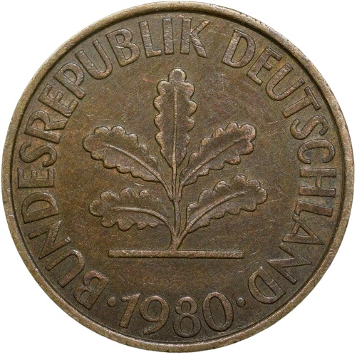 Brass 10 Pfenning of Germany (AD 1980) Beautiful Grade