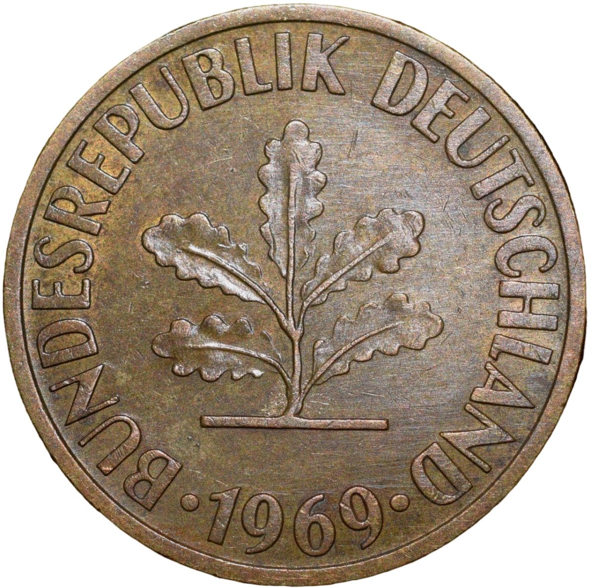 Brass 10 Pfennings of Germany (AD 1969) with Oak Sapling