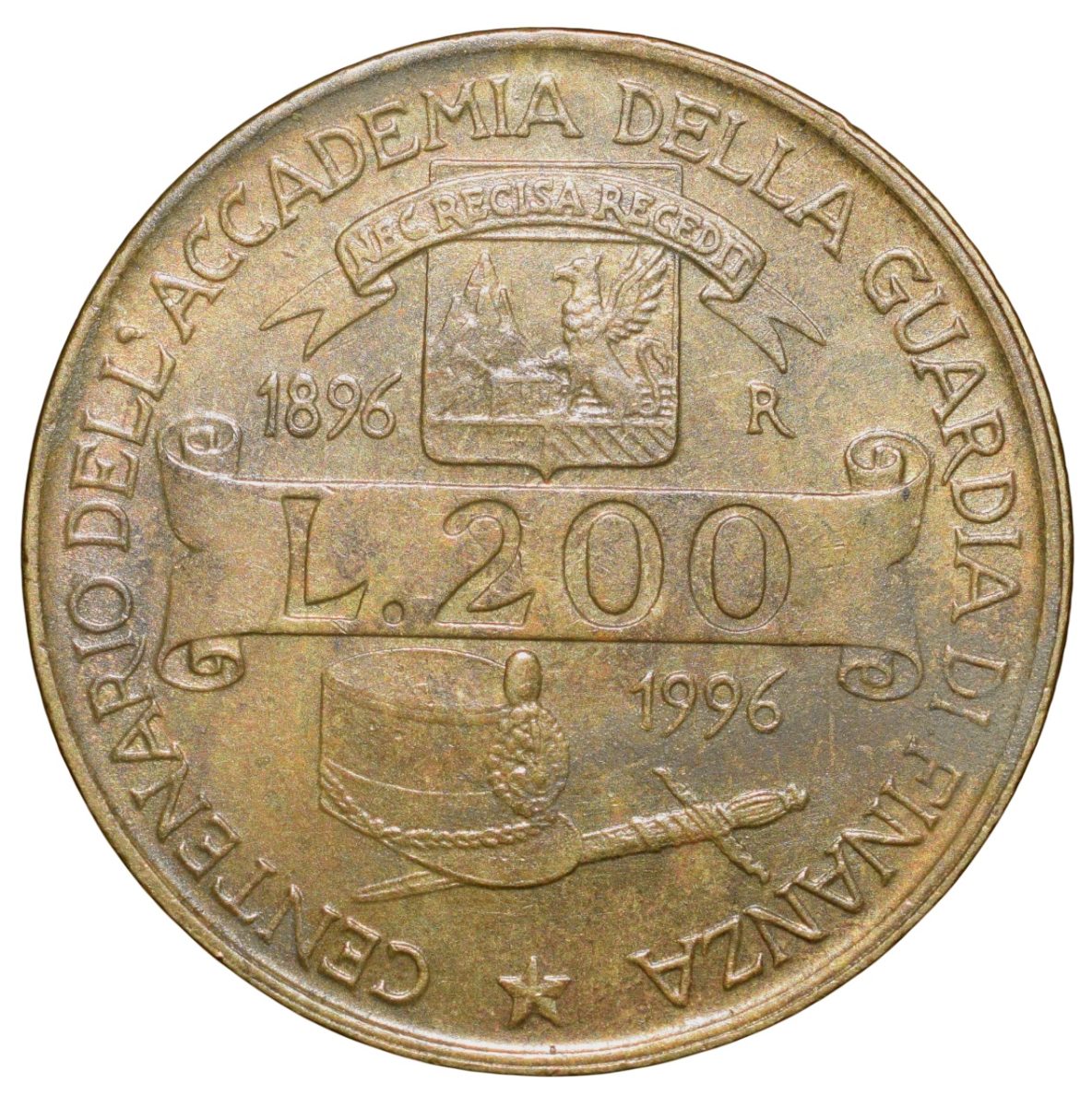 Brass 200 Lire of Italy (AD 1996) Commemorative issue – Centenary of the Academy of the “Guardia di Finanza”