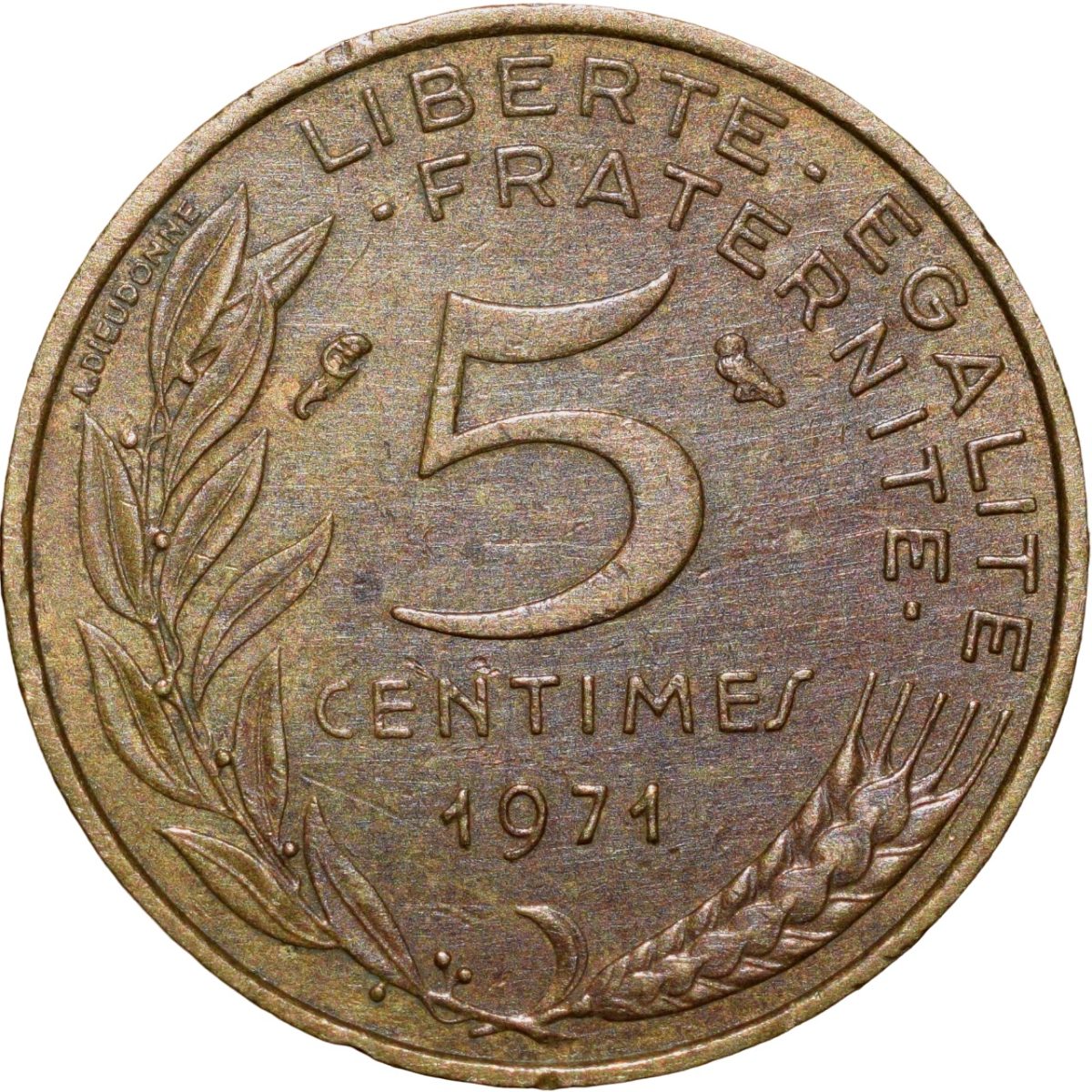 🏷️ Rare Brass 5 Centimes coin from France (AD 1971)