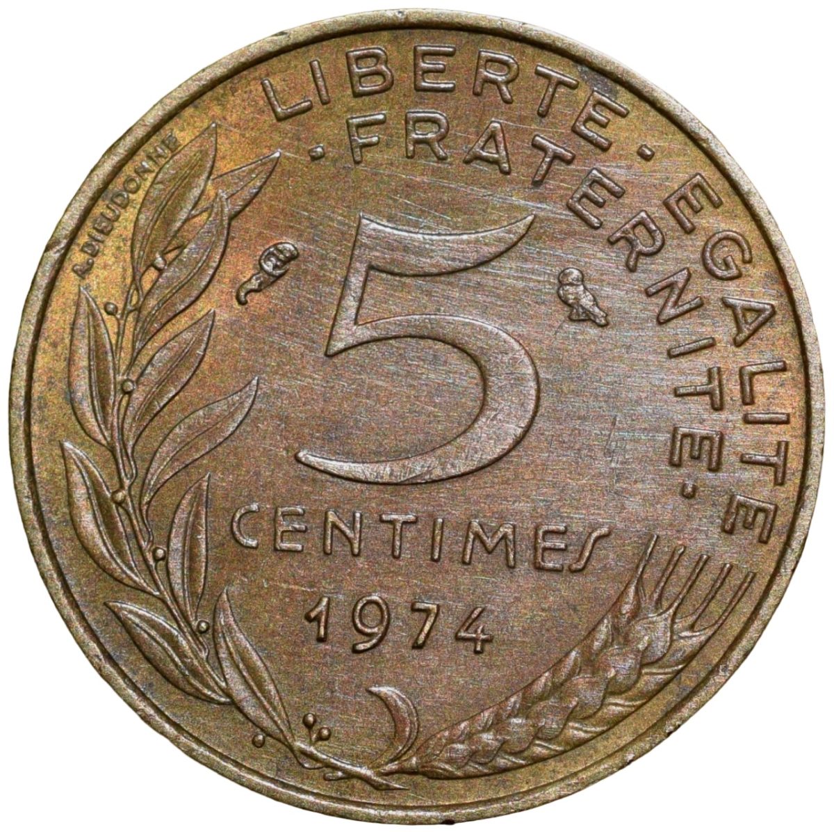🏷️ Rare Brass 5 Centimes coin from France (AD 1974)