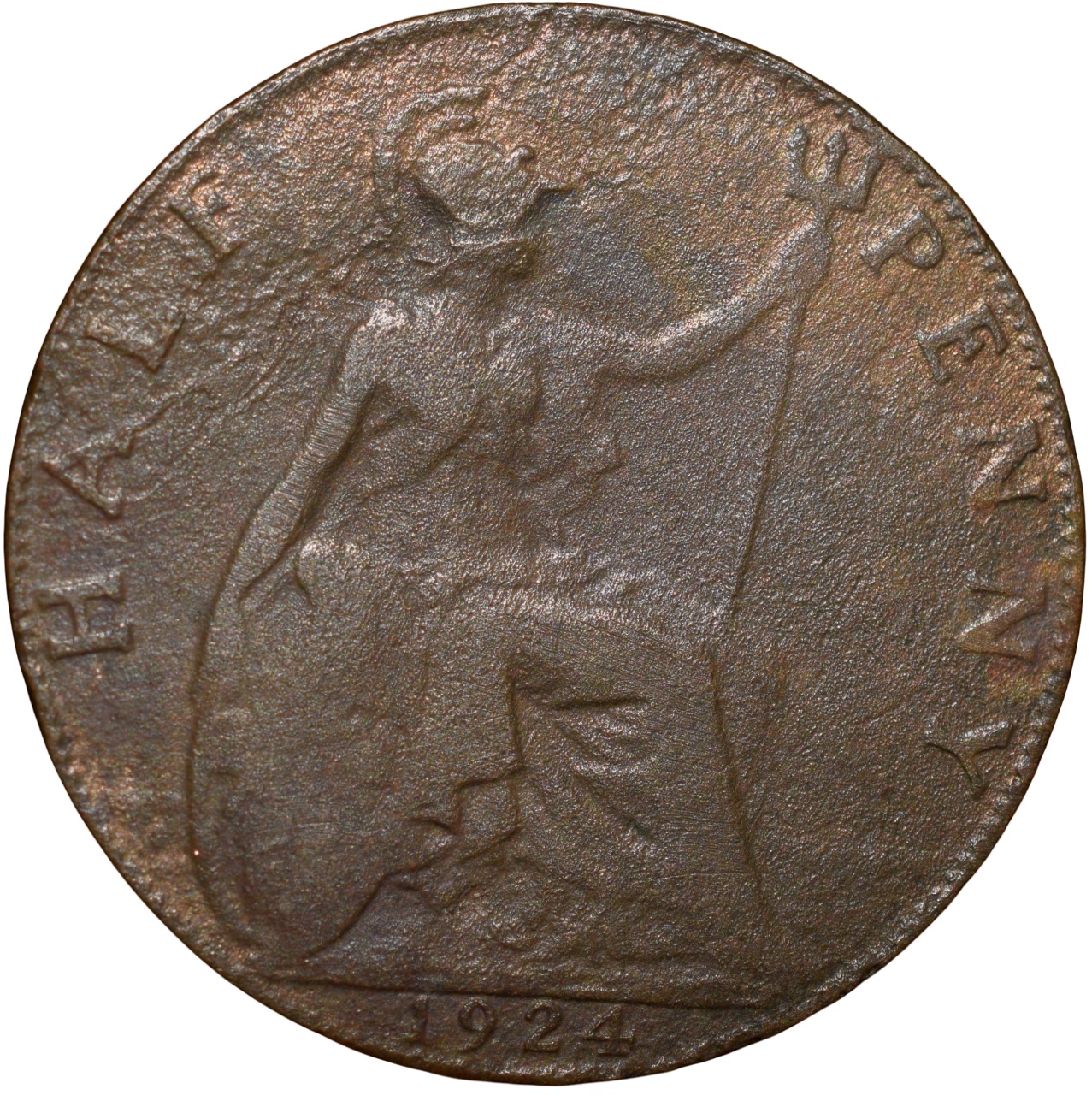 Bronze 1/2 Penny of George V (AD 1924) from United Kingdom