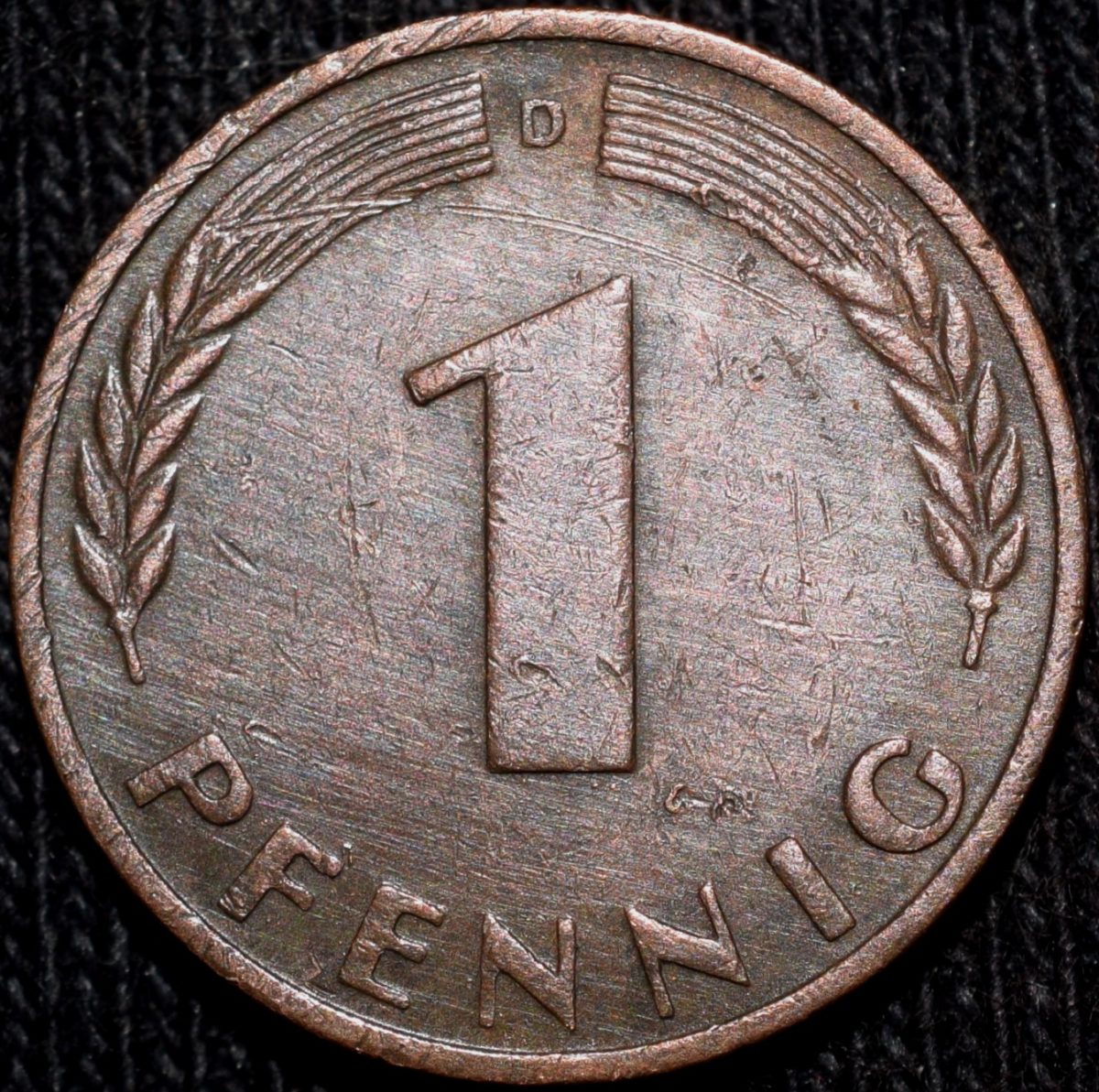 Bronze 1 Pfennig of Germany (AD 1950) with Oak Sapling