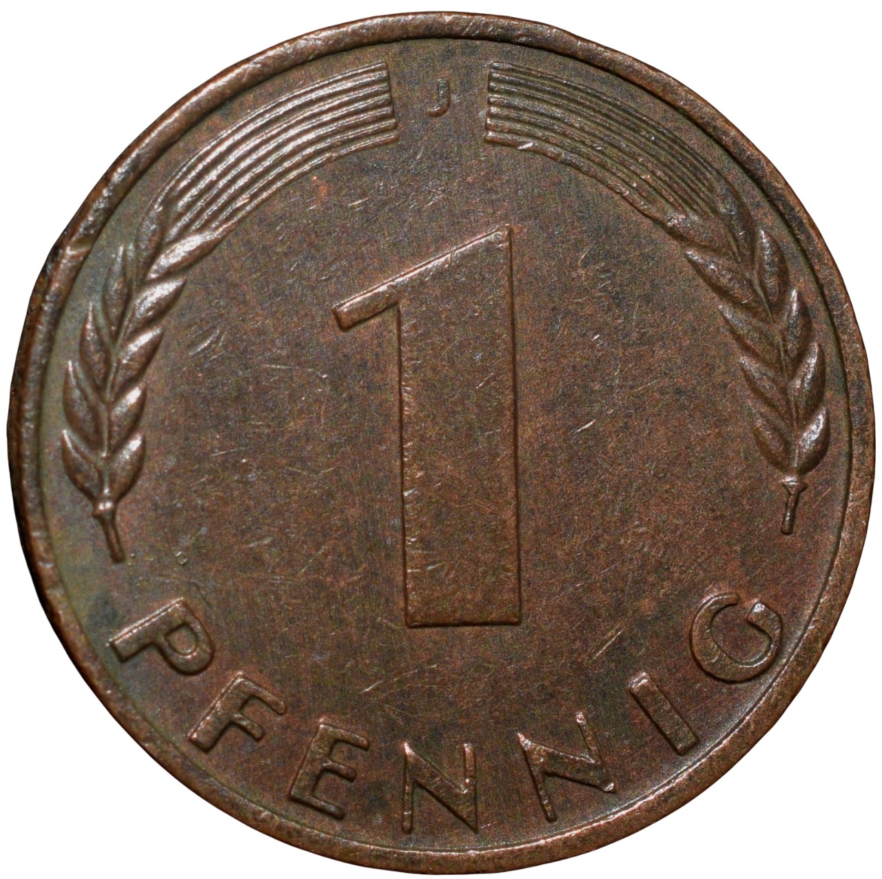 Bronze 1 Pfennig of Germany (AD 1950) with Oak Sapling