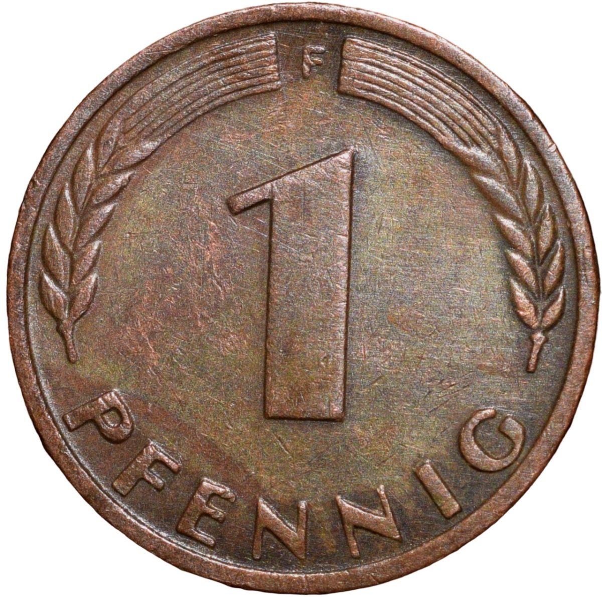 Bronze 1 Pfennig of Germany (AD 1968) with Oak Sapling