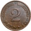 Germany Country, (AD 1960), Bronze 2 Pfennig, Obv: An oak seedling above the date, Rev: The mintmark in between two rye ears above the denomination, Extremely Fine.