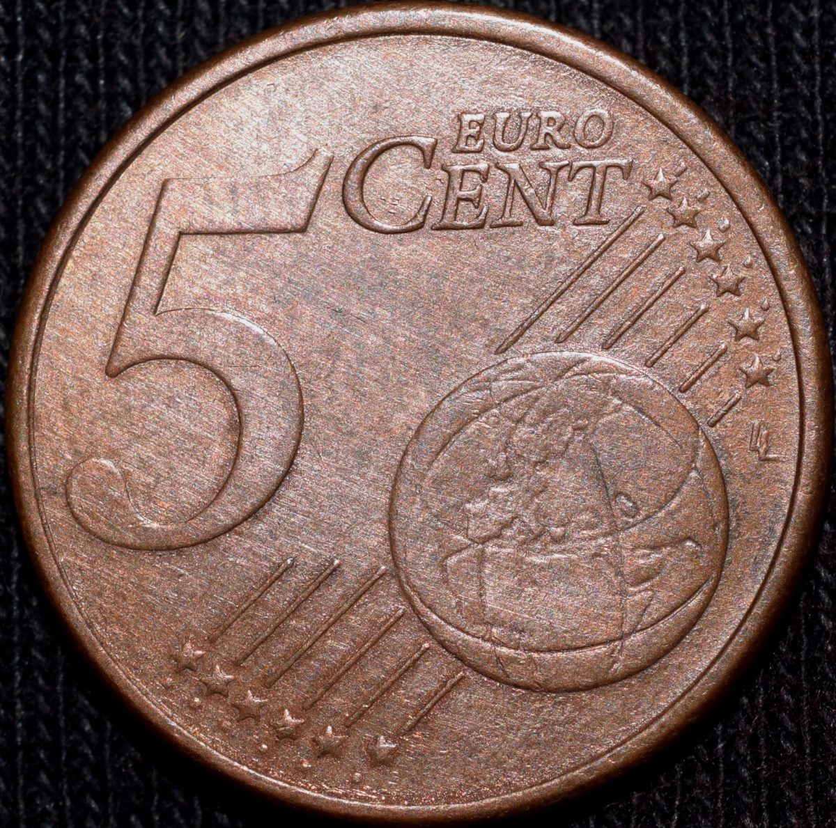 France, (AD 2011), Bronze 5 Euro Cents, Obv: A young, feminine Marianne with determined features that embody the desire for a sound and lasting Europe. Around twelve five-pointed stars representing the European Union, Rev: A globe, next to the face value, shows Europe in relation to Africa and Asia, 3.98 Gms, 20.98 mm, About Very Fine.