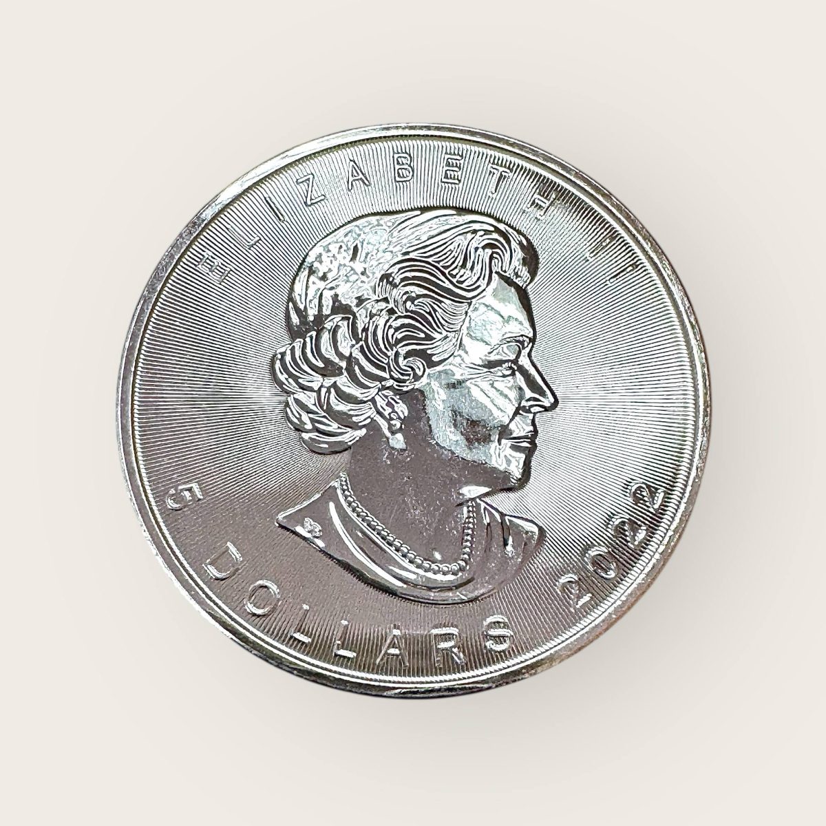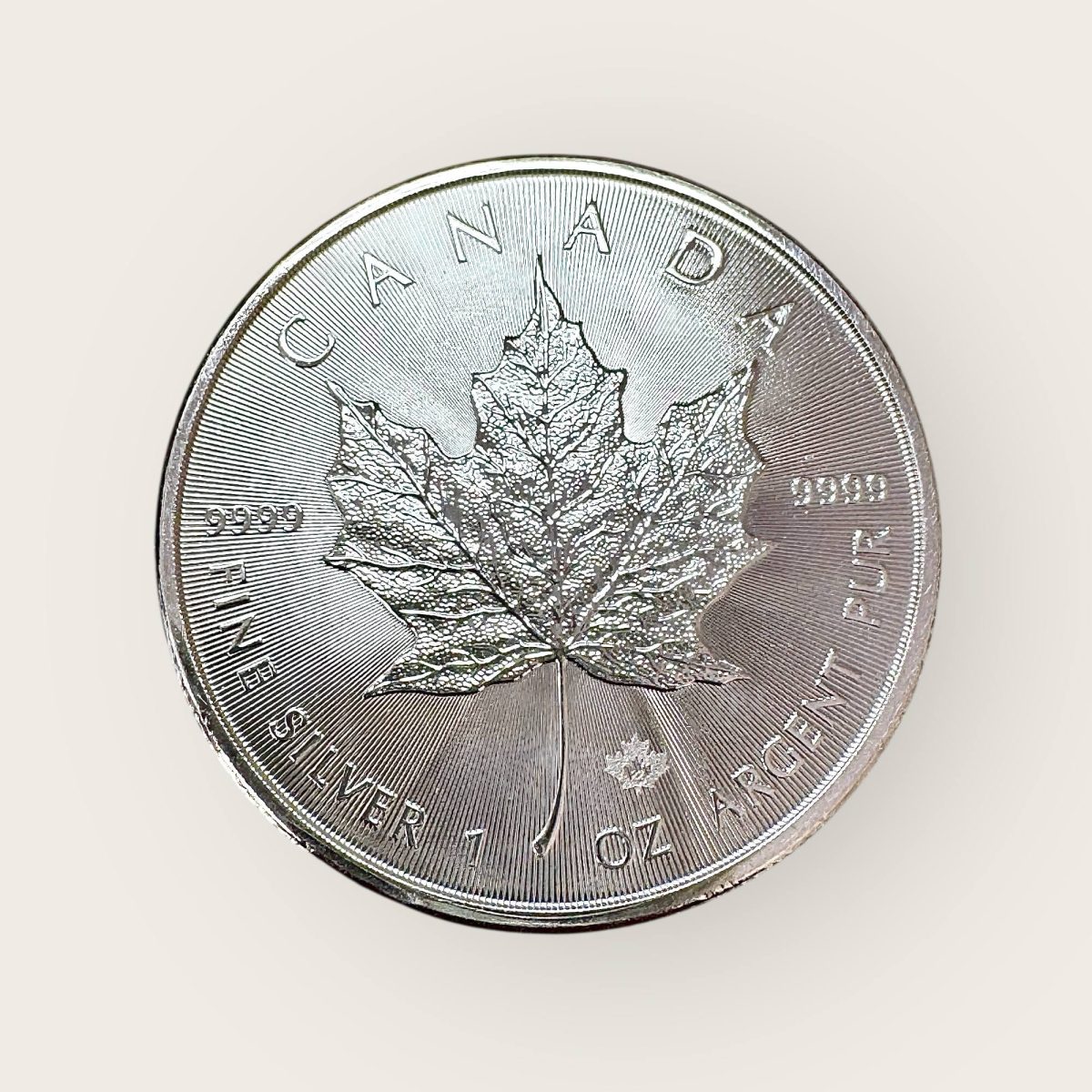 Classic maple leaf design, encircled by lettering with small maple leaf security feature below. with the number last two digits of the year engraved in the security feature, representing the year