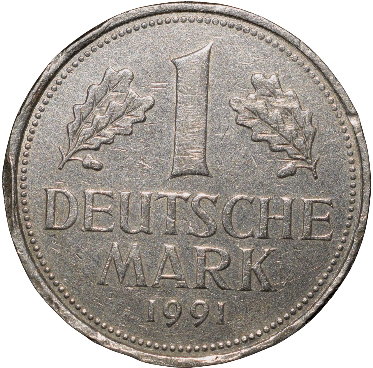 Germany Country, (AD 1991), Copper-Nickel 1 Mark, Obv: Eagle in Centre, Inscription around, Rev: Denomination & Date, 5.52 Gms, 23.33 mm, Very Fine.