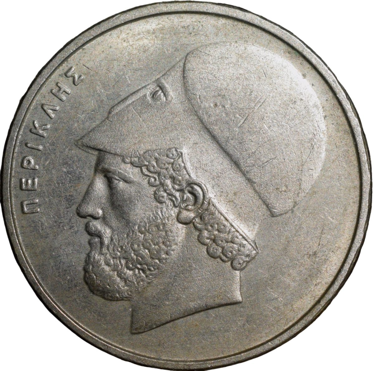 Copper-Nickel 20 Drachmes of Greece Country (AD 1986) with Helmeted bust of Pericles