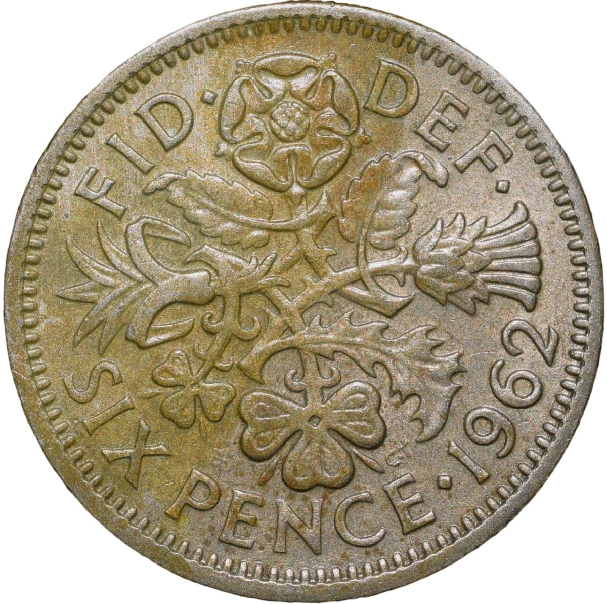 Copper-Nickel 6 Pence of Elizabeth II of United Kingdom (AD 1962) with Flowers