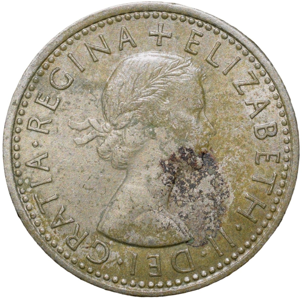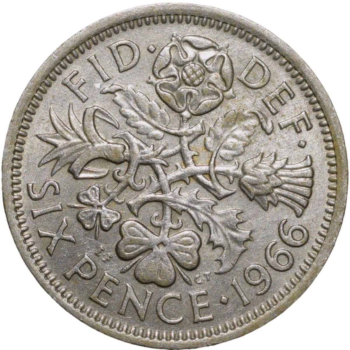 Copper-Nickel 6 Pence of Elizabeth II of United Kingdom (AD 1966) with Flowers