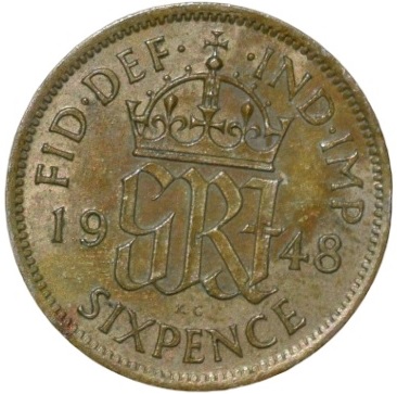Copper-Nickel 6 Pence of George VI of United Kingdom (AD 1948) with Flowers
