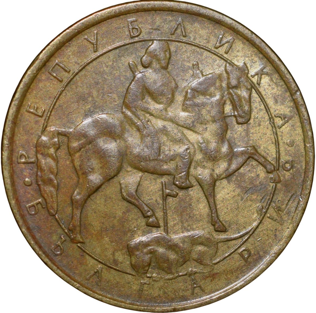 Bulgaria Country, (AD 1992), Nickel-Brass 1 Leva, Obv: Madara Horseman, Inscription, Rev: Denomination & Date, 4.06 Gms, 23.12 mm, Extremely Fine, Scarce.