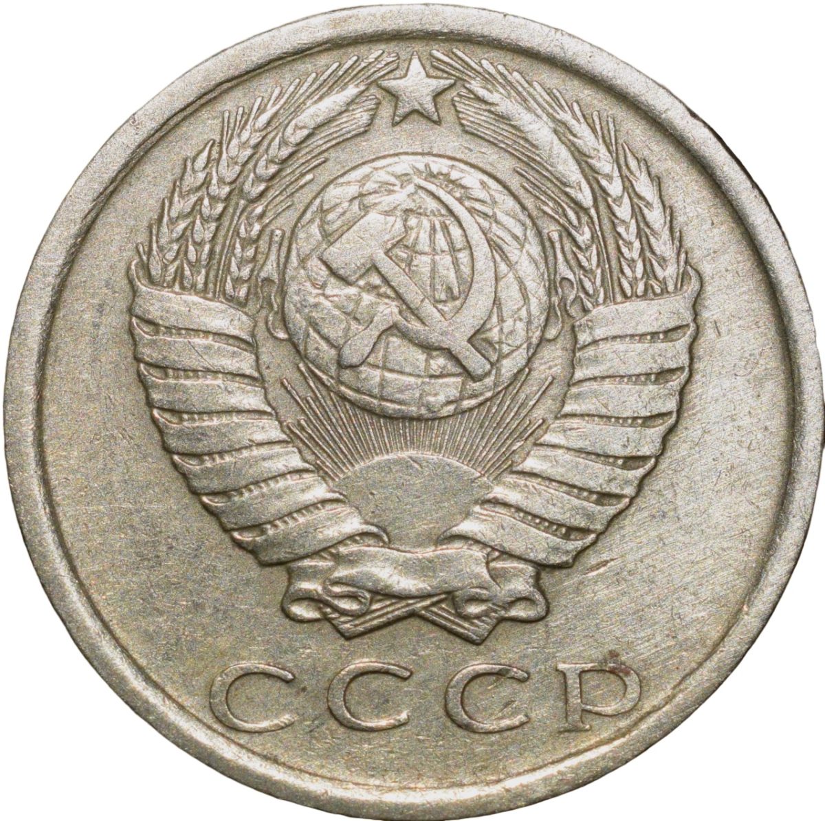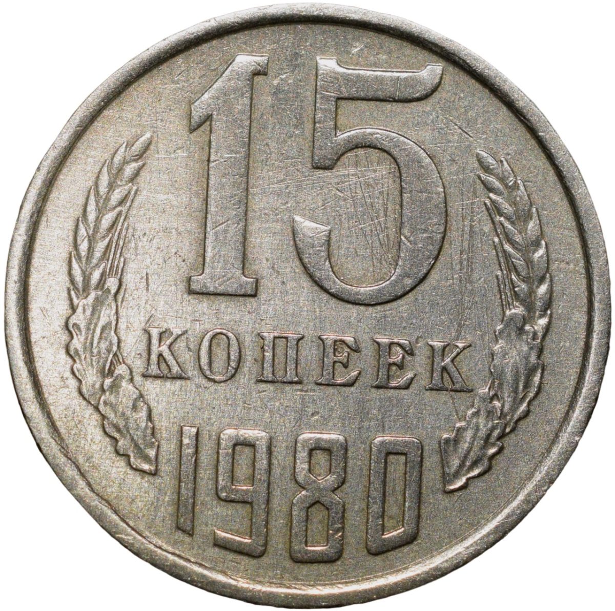 Russia, (AD 1980), Nickel-Brass 15 Kopecks, Obv: The arms of the Soviet Union (a hammer and sickle overlain on a globe above the sun with rays, all within wreath or sheaf of wheat stalks, star above within 15 ribbons on the wreath (7 + 1 + 7 ribbons), Rev: The denomination above the date within a partial wreath, 2.46 Gms, 19.00 mm, Extremely Fine.