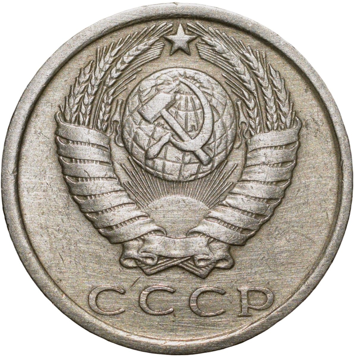 Russia, (AD 1981), Nickel-Brass 15 Kopecks, Obv: The arms of the Soviet Union (a hammer and sickle overlain on a globe above the sun with rays, all within wreath or sheaf of wheat stalks, star above within 15 ribbons on the wreath (7 + 1 + 7 ribbons), Rev: The denomination above the date within a partial wreath, 2.46 Gms, 19.00 mm, Extremely Fine.