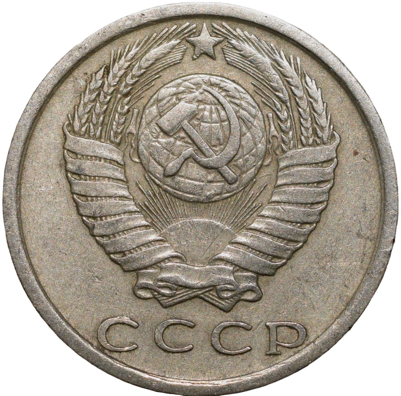 Russia, (AD 1981), Nickel-Brass 15 Kopecks, Obv: The arms of the Soviet Union (a hammer and sickle overlain on a globe above the sun with rays, all within wreath or sheaf of wheat stalks, star above within 15 ribbons on the wreath (7 + 1 + 7 ribbons), Rev: The denomination above the date within a partial wreath, 2.46 Gms, 19.00 mm, Extremely Fine.
