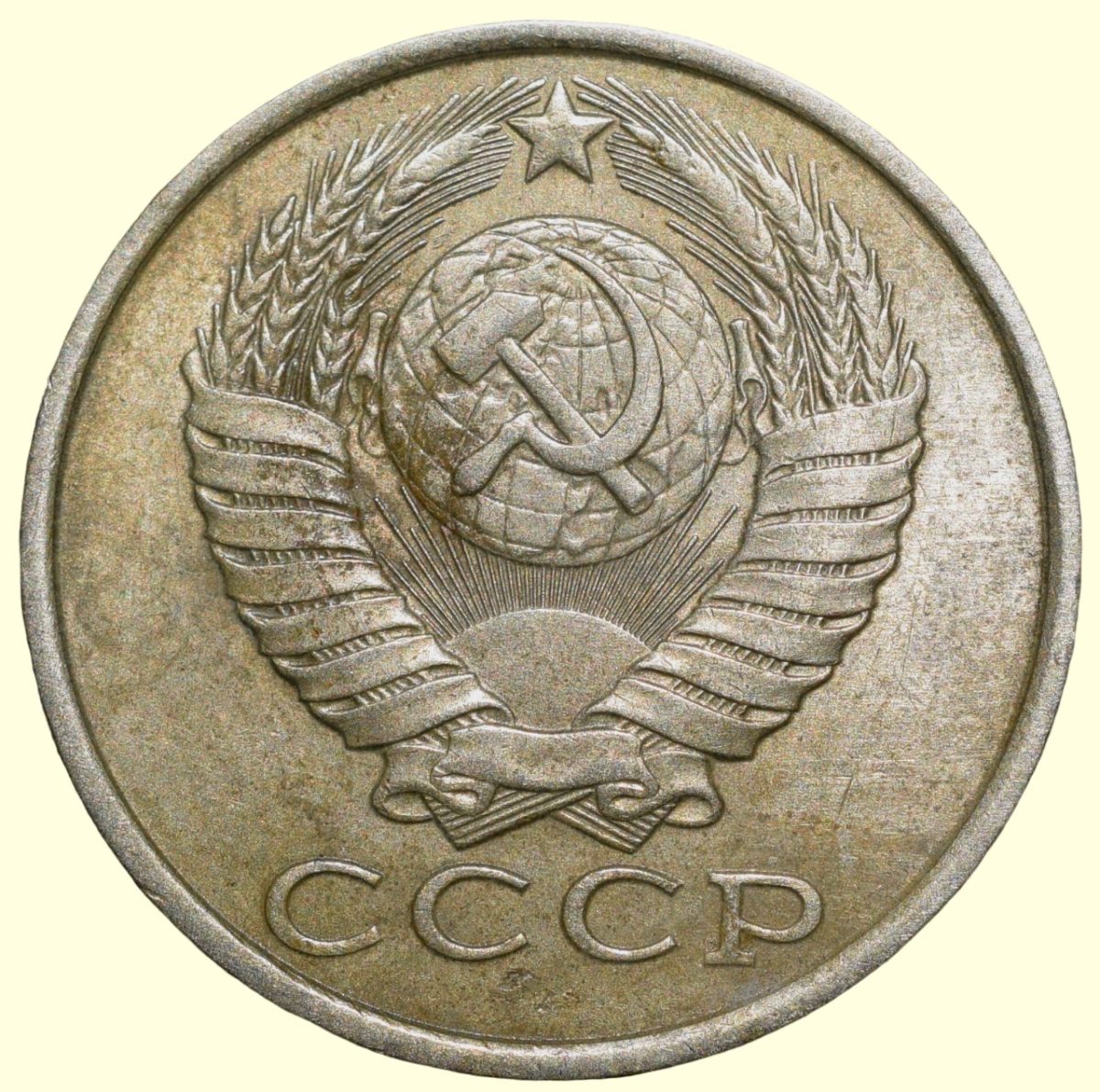 Russia, (AD 1982), Nickel-Brass 15 Kopecks, Obv: The arms of the Soviet Union (a hammer and sickle overlain on a globe above the sun with rays, all within wreath or sheaf of wheat stalks, star above within 15 ribbons on the wreath (7 + 1 + 7 ribbons), Rev: The denomination above the date within a partial wreath, 2.46 Gms, 19.00 mm, Extremely Fine.