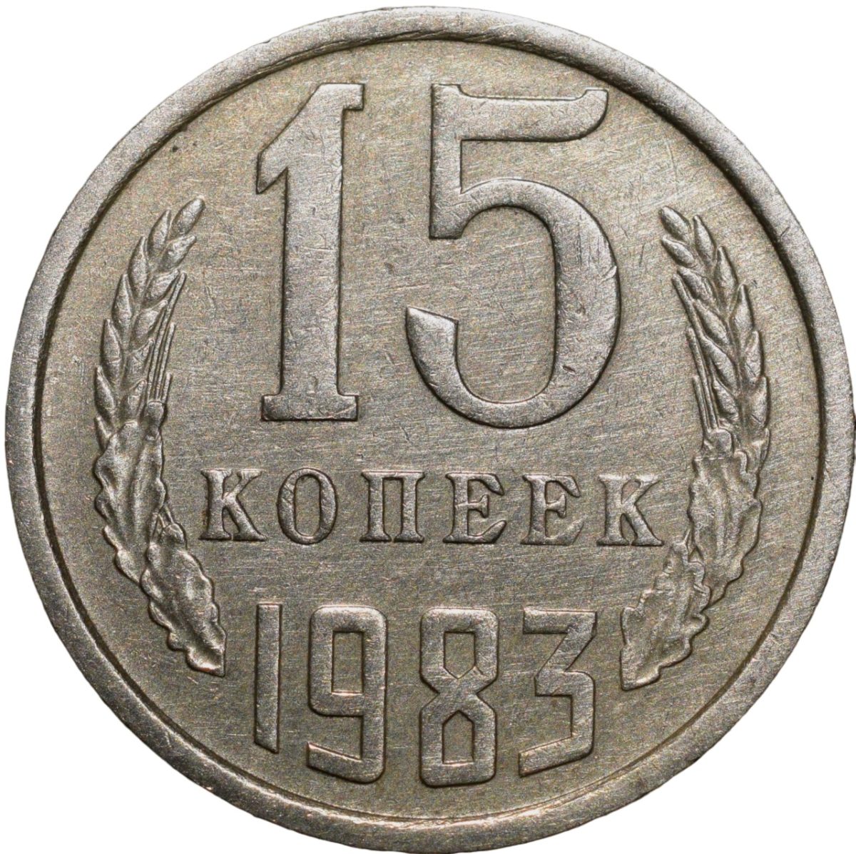 Russia, (AD 1983), Nickel-Brass 15 Kopecks, Obv: The arms of the Soviet Union (a hammer and sickle overlain on a globe above the sun with rays, all within wreath or sheaf of wheat stalks, star above within 15 ribbons on the wreath (7 + 1 + 7 ribbons), Rev: The denomination above the date within a partial wreath, 2.46 Gms, 19.00 mm, Extremely Fine.