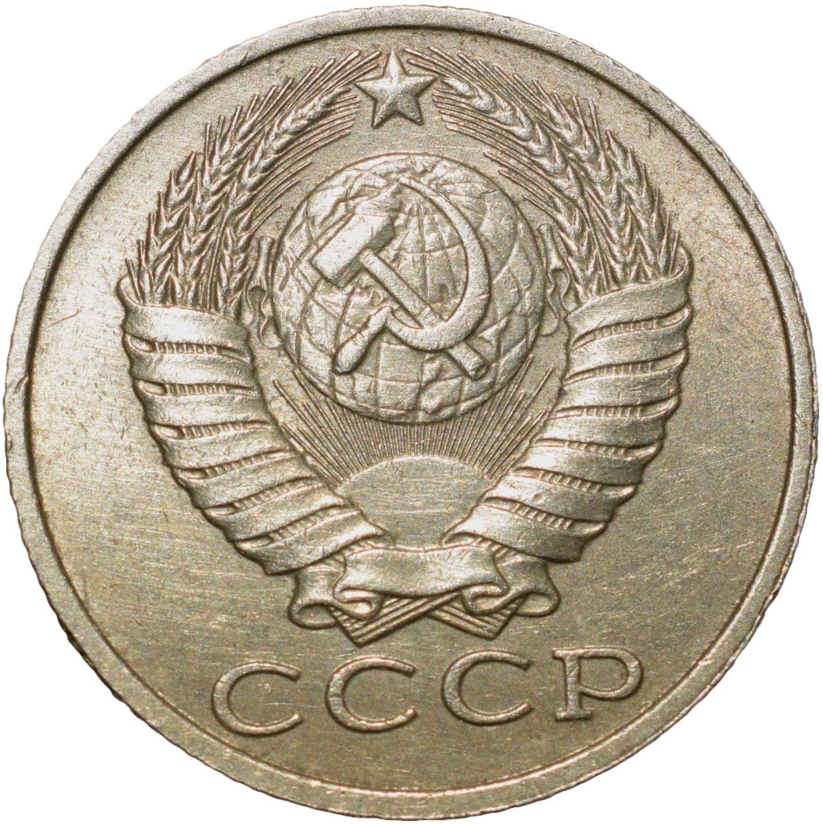 Russia, (AD 1987), Nickel-Brass 15 Kopecks, Obv: The arms of the Soviet Union (a hammer and sickle overlain on a globe above the sun with rays, all within wreath or sheaf of wheat stalks, star above within 15 ribbons on the wreath (7 + 1 + 7 ribbons), Rev: The denomination above the date within a partial wreath, 2.46 Gms, 19.00 mm, Extremely Fine.