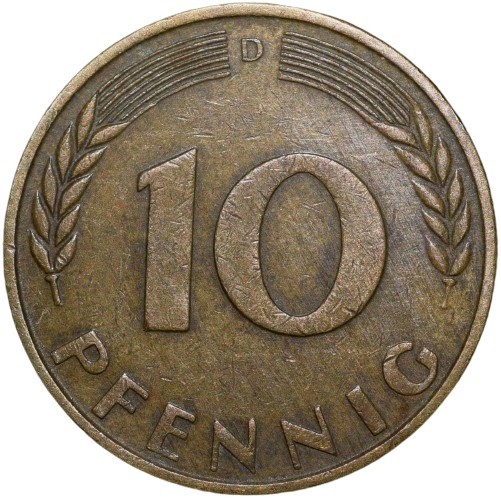 Old Brass 10 Pfenning of Germany (AD 1950) Beautiful Grade