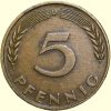 Germany Country, (AD 1950), Brass 5 Pfennings, Obv: Date & Inscription around Oak Sapling, Rev: Denomination, 3.02 Gms, 17.55 mm, Extremely Fine.