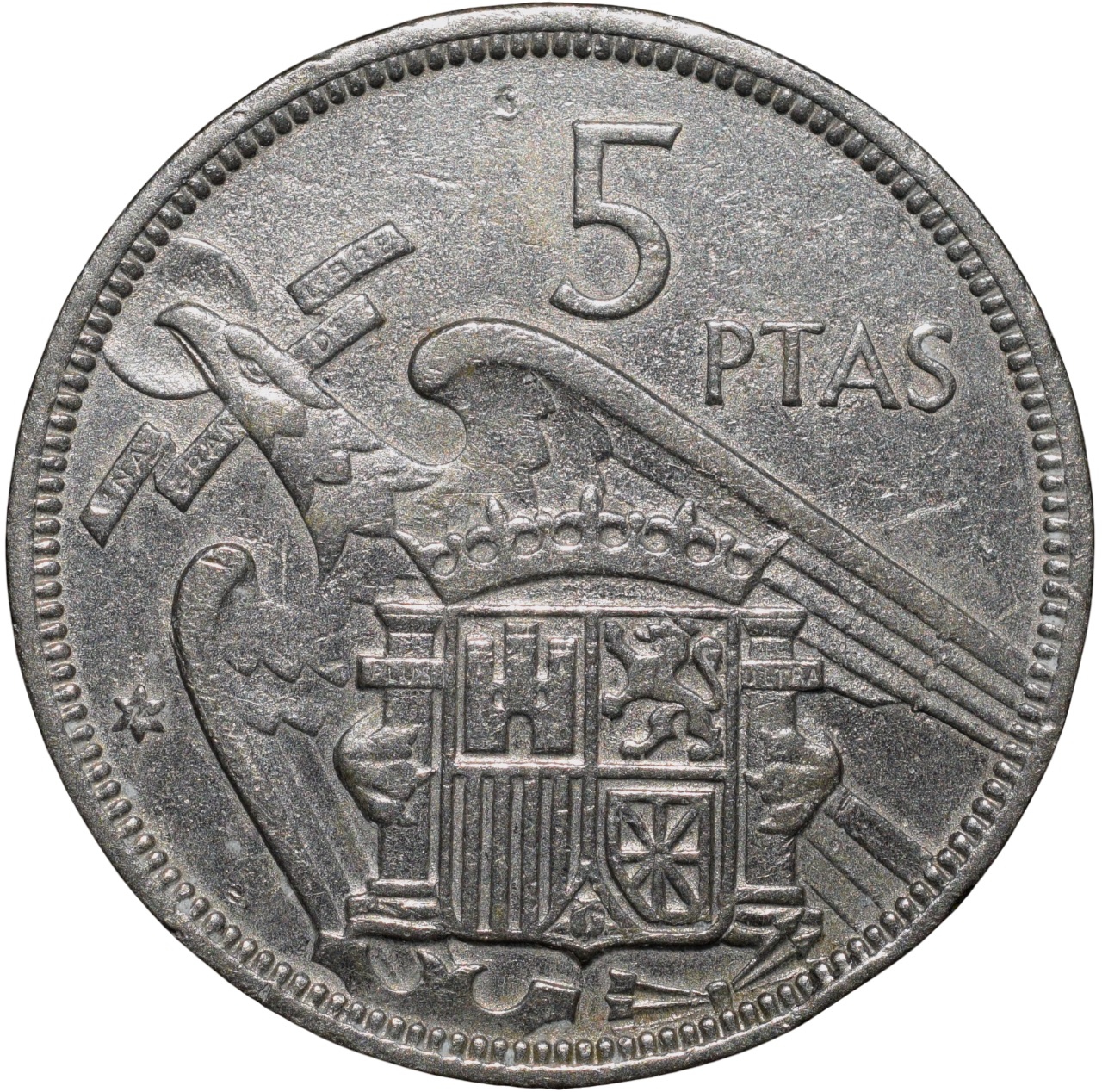 Old Copper-Nickel 5 Pesetas of Spain Country (AD 1957) Francisco Franco