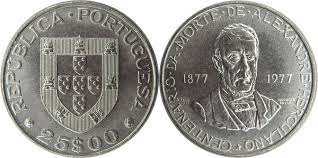 Portugal, 1977, 25 Escudos, 100th Anniversary of the Death of Alexandre Herculano, KM# 608, XFine Condition.