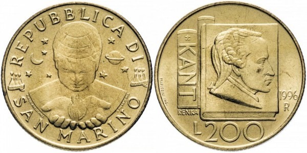 San Marino, 1996, 200 Lire, KM #356, Immanuel Kant – Philosophers of the Occident, Fine Condition.
