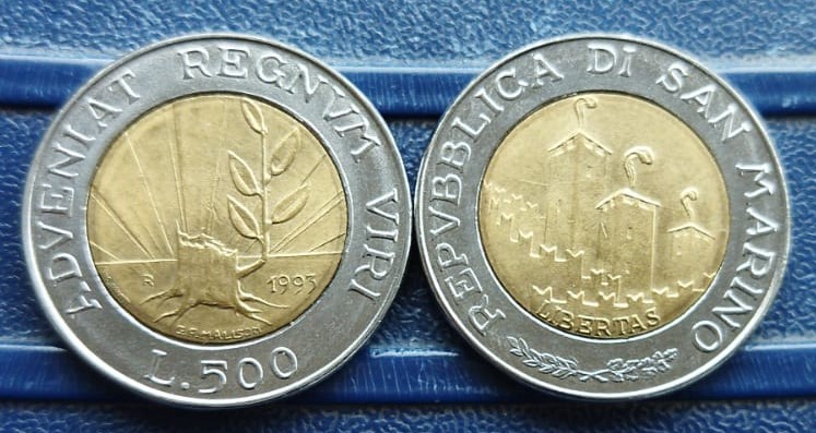 San Marino, 500 Lire, 1993, “Adveniat Regnum Viri”, KM #301, Circulated Condition.
