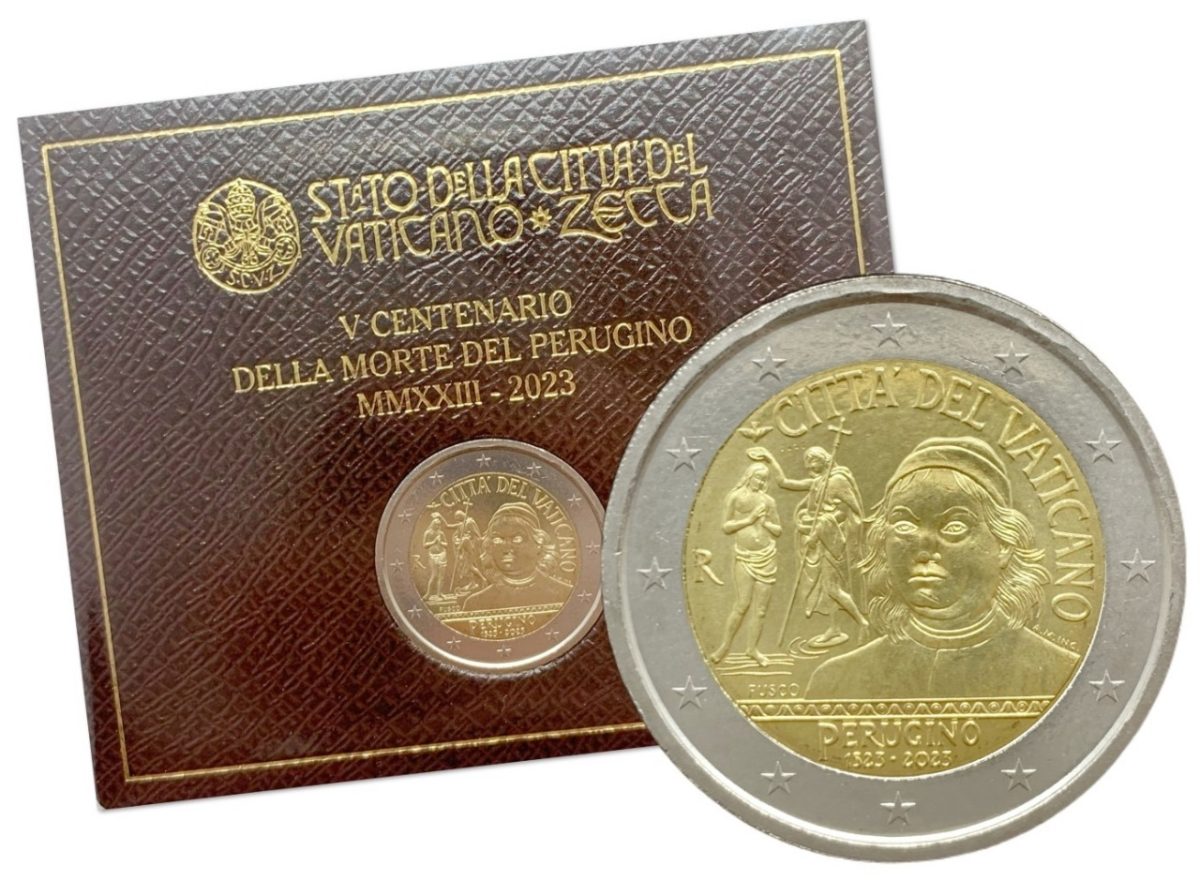 Vatican, 2 Euro, 2023, The 5th Centenary of the death of Pietro Perugino, KM #575, Bimetal, UNC Condition, Mint Folder.