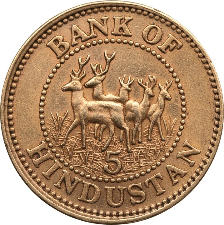 Ex-Rare 5 Rupya (Bank of Hindustan)1939 King George 6th,5 Deer/Hiran – Bank of India Medieval Coin Collection With Beautiful Box and Stand