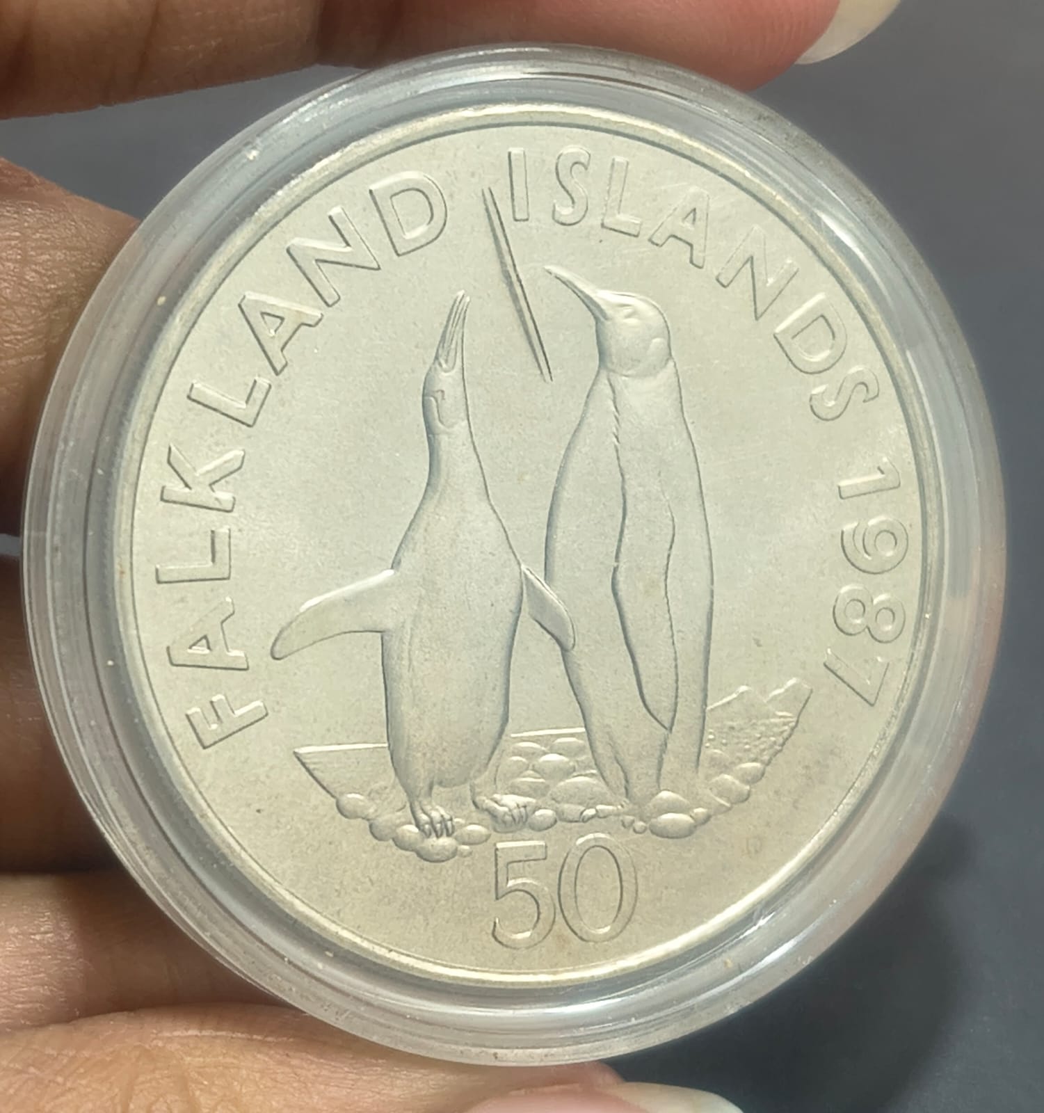 Falkland Islands 50 Pence 1987 – Elizabeth II WWF RARE UNC COIN WITH CAPSULE # 1021